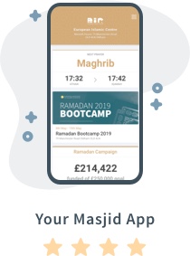 - Allow your users to view your mosque's prayer times right on their homepage and any announcements or your donation goal.