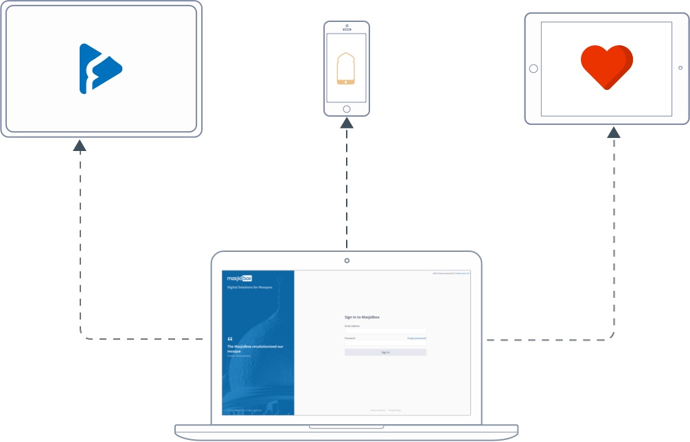 Ces services sont destinés à l'usage personnel de vos fidèles, et vous en êtes le cœur.Masjidbox One
