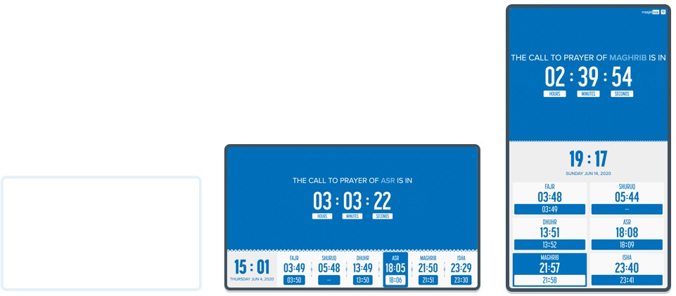 - Masjidbox Screens automatically detect and adapt the display of contents depending on your screen size.